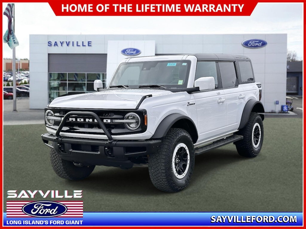 2022 Ford Bronco Outer Banks 4WD 10-Speed Automatic 2.3L EcoBoost I-4 CARFAX One-Owner. *LIFETIME LIMITED POWERTRAIN/DRIVETRAIN WARRANTY INCLUDED*, *APPLE CARPLAY / ANDROID AUTO*, MUST FINANCE A MIN 75% OF THE PURCH PRICE WITH SAYVILLE FORD TO QUALIFY FOR DEALERSHIP FINANCE DISC, *Not all buyers qualify.*, *Finance discount price is not available to cash buyers, buyers with fair or poor credit.*, *Fin. discount not available to buyers who obtain financing from a source other than Sayville Ford*. Odometer is 7965 miles below market average! Awards: