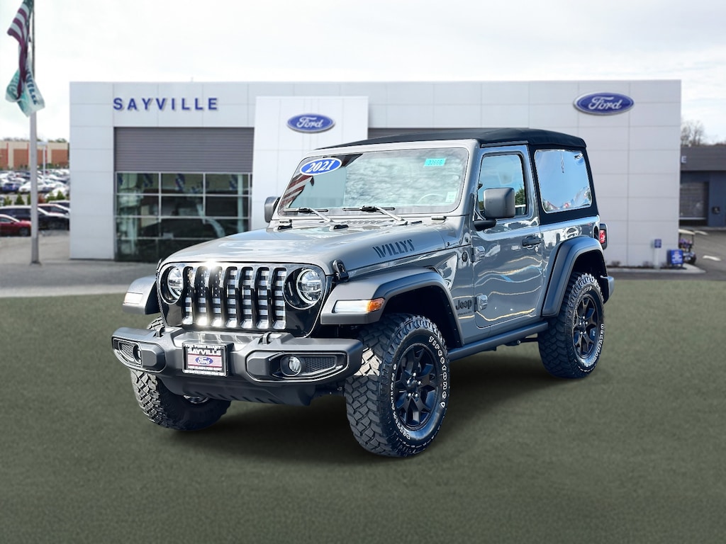 Recent Arrival! 2021 Jeep Wrangler Willys 4WD 8-Speed Automatic 2.0L I4 DOHC CARFAX One-Owner. * NO FEE DEALER*, *LIFETIME LIMITED POWERTRAIN/DRIVETRAIN WARRANTY INCLUDED*, *APPLE CARPLAY / ANDROID AUTO*, MUST FINANCE A MIN 75% OF THE PURCH PRICE WITH SAYVILLE FORD TO QUALIFY FOR DEALERSHIP FINANCE DISC, *Not all buyers qualify.*, *Finance discount price is not available to cash buyers, buyers with fair or poor credit.*, *Fin. discount not available to buyers who obtain financing from a source other than Sayville Ford*. Odometer is 11642 miles below market average!